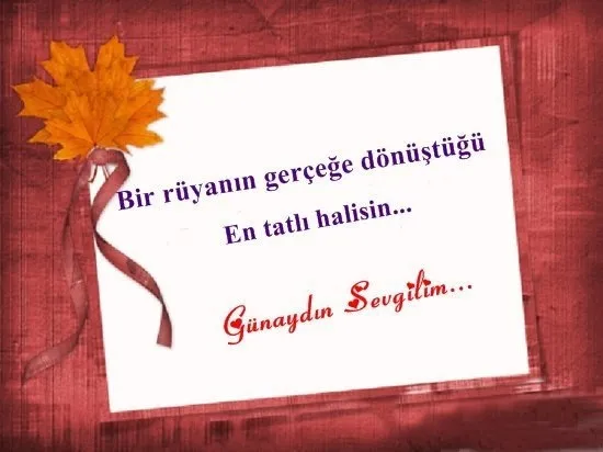 Sen benim yıldızımsın güneşim olduğun gibi sen benim bitmeyen günlerimsin tıpkı bugün olduğu gibi günaydın sevgilim günaydın benim en güzel günüm. Güzelliğin kaynağı olan SENİN için bir ömür feda etmek az bile. Seni özlemek seni beklemek olgunlaştırdı beni.